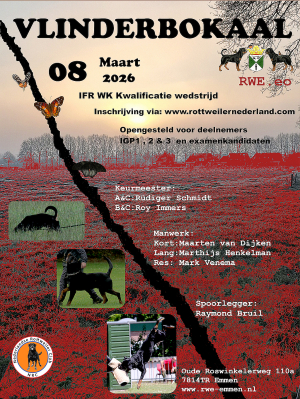Je hond is pas aangenomen als er ook betaald is op rekeningnummer: NL 54 RABO 033 67 20 130 t.n.v. Rottweilerclub.